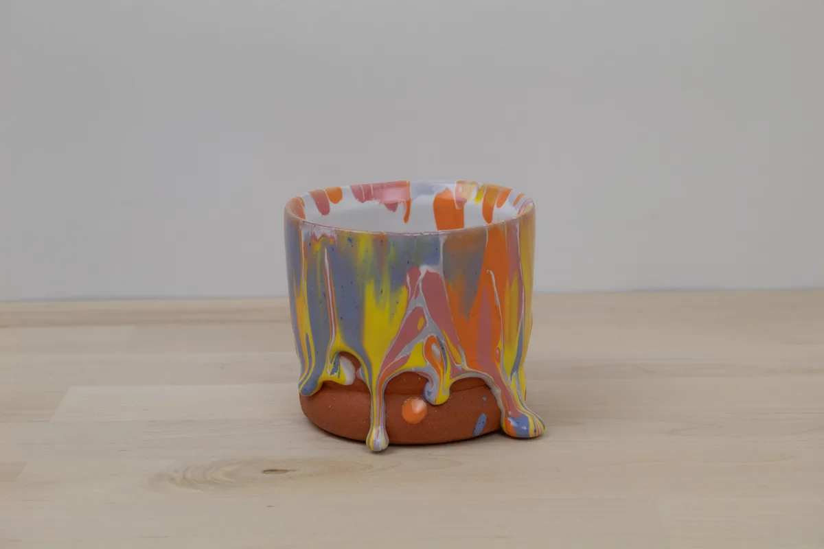 Functional cup from the Core Sample series. Earthenware with mixed media.